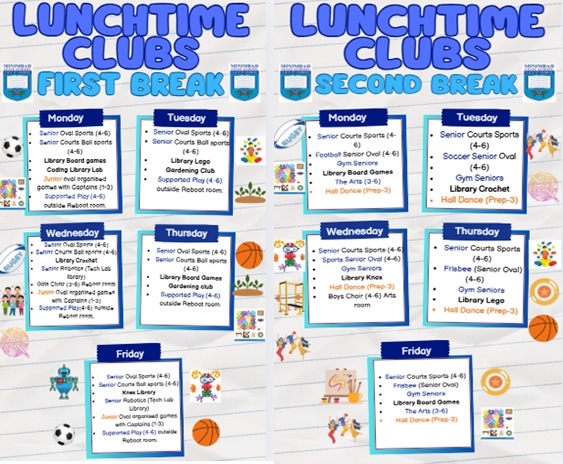 At Minimbah State School, we believe that lunchtime is more than just a break — it's an opportunity for students to connect, explore new interests, and feel a sense of belonging. Our lunchtime clubs offer a variety of fun, structured activities that cater to different student interests, from sports and art to music, games, STEM and more.